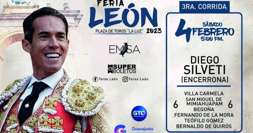 Este próximo sábado a las 5 de la tarde en punto, en la plaza de toros La Luz de León, Guanajuato, se llevará a cabo una corrida de toros con carácter muy especial y trascendental. Lidiará en solitario seis toros el matador Diego Silveti, quinto matador de toros de una dinastía que comprende cuatro generaciones y que este 2023 cumple 107 años de llevar con orgullo el nombre de Guanajuato y de México por las plazas del mundo con arte, valor y gallardía.