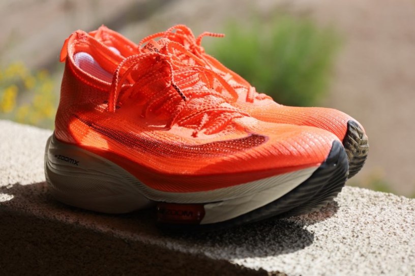 Lo anterior debido a la composición de espuma y fibra de carbono de la suela que funciona como un resorte que alarga el tranco del atleta aumentando su velocidad, sin hacer un esfuerzo adicional.