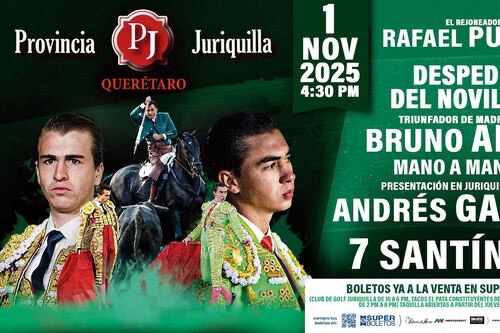 Este sábado 1 de noviembre, en la plaza que considero una joya de nuestra fiesta —Juriquilla—, se llevará a cabo un mano a mano entre dos novilleros de gran calidad: Bruno Aloi alternará con Andrés García.