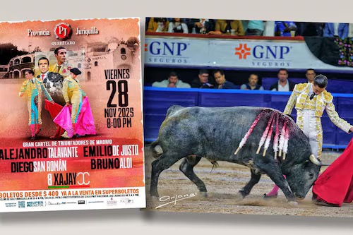 Esto sigue. El próximo viernes, en Provincia Juriquilla, un gran cartel a las 20:30 horas. Bajo la premisa de su padre, el Pollo Torres Landa, de no programar un cartel al que no asistirías como aficionado, su hijo, el también Pollo, hoy al frente de la plaza, ha configurado un festín taurino ante ocho de Xajay. Talavante, De Justo, San Román y Aloi, que estrena alternativa, se darán un agarrón taurino que promete emociones y arte en el ruedo. Hacer fiesta: figuras alternando con jóvenes ante toros de prestigio. Debe ser una gran noche, sin duda alguna.