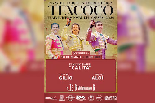 Completa el cartel el capitalino Bruno Aloi, de reciente alternativa el pasado mes de noviembre en Aguascalientes, quien afronta su primera temporada como Matador de Toros y que este mismo año, dos meses después de esta tarde texcocana, confirmará su alternativa en la plaza de toros de Las Ventas, en Madrid, de manos de Diego Urdiales y como testigo Andrés Roca Rey, en un cartel de máxima expectación ante seis toros del hierro sevillano de Juan Pedro Domecq, en la Corrida de la Prensa dentro de la Feria de San Isidro. Seis del hierro guanajuatense de Vista Hermosa completan el elenco texcocano, que sin duda es de gran atractivo para aficionados y público en general.